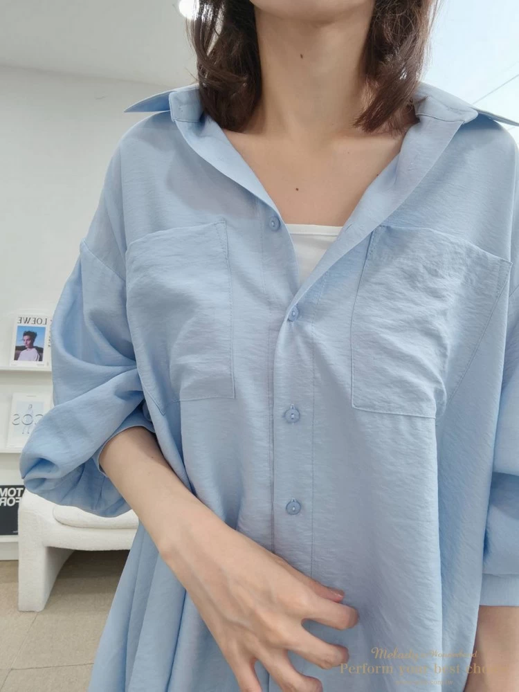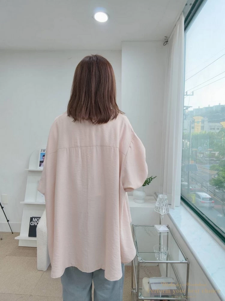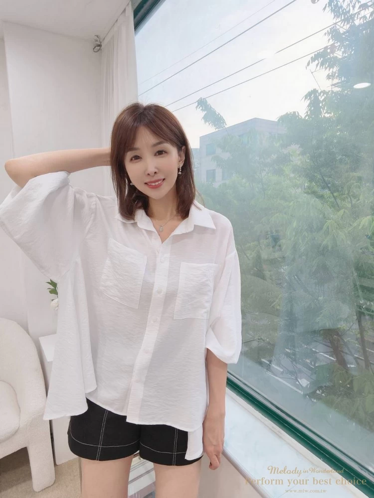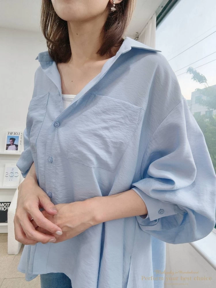 2605-090 自訂款-雙口袋前短後長傘擺造型襯衫(4色)