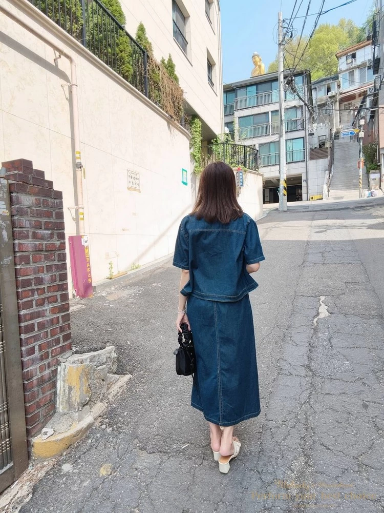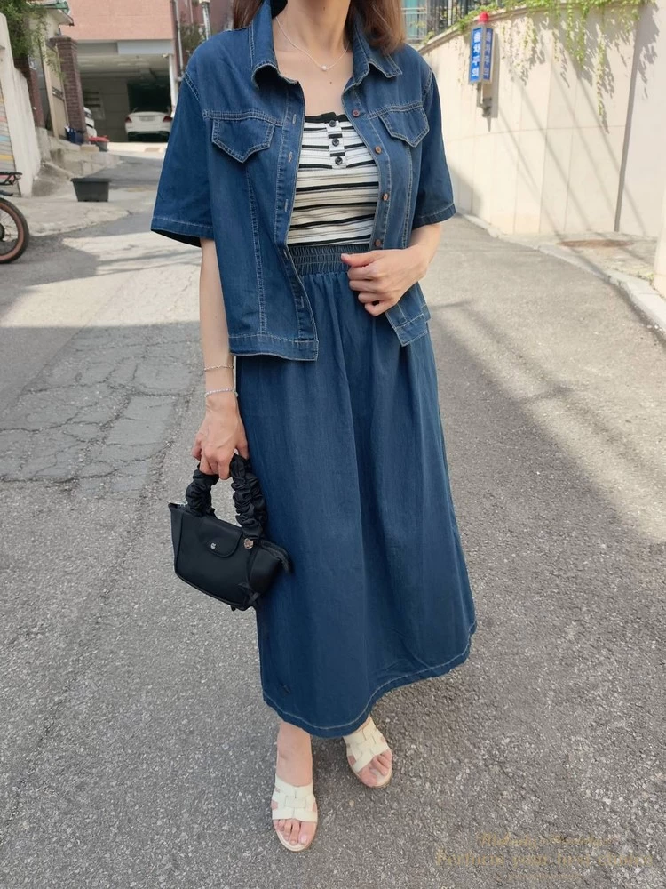 休閒翻蓋口袋造型單寧套裝組(2色)