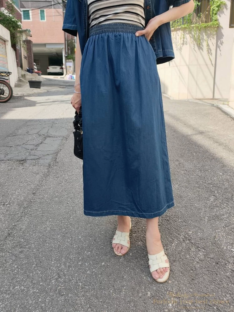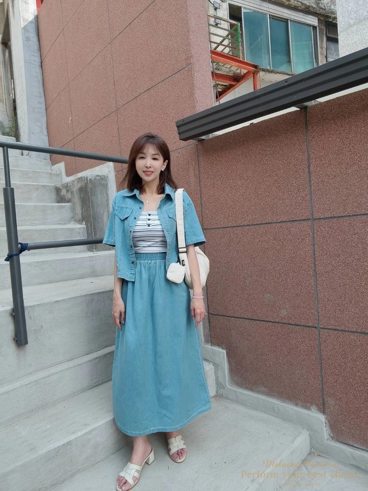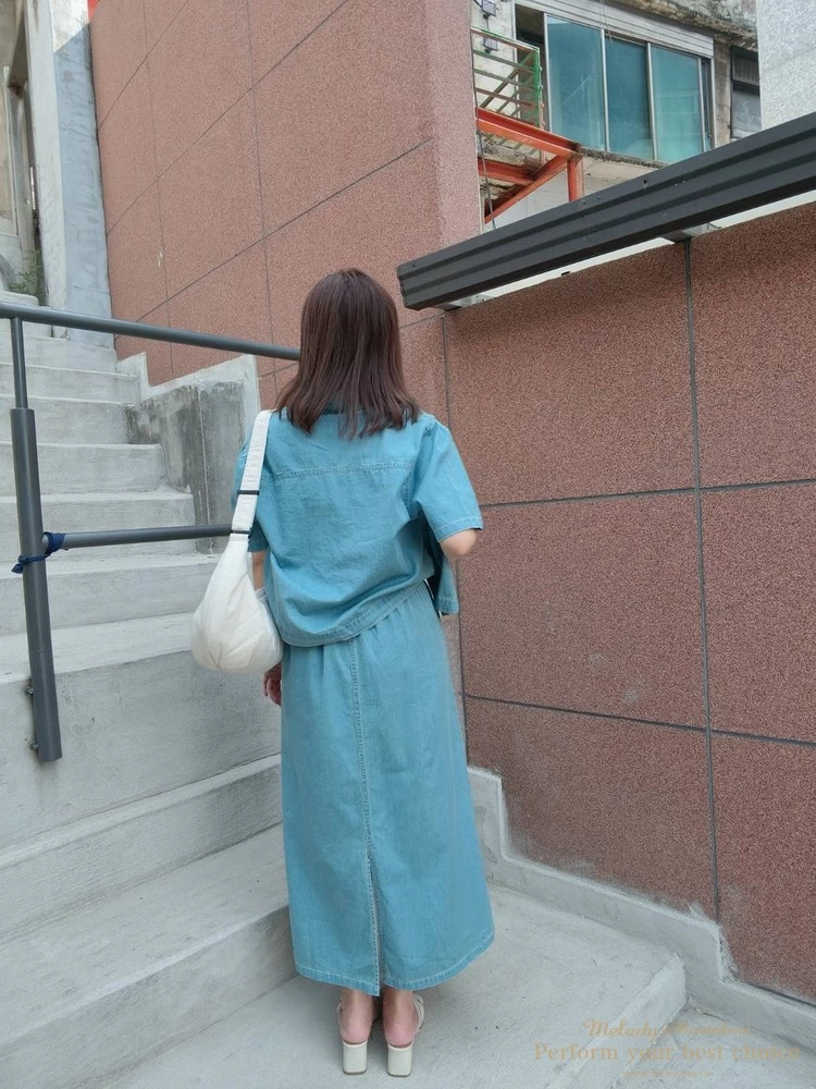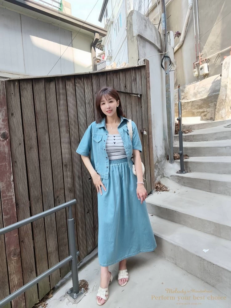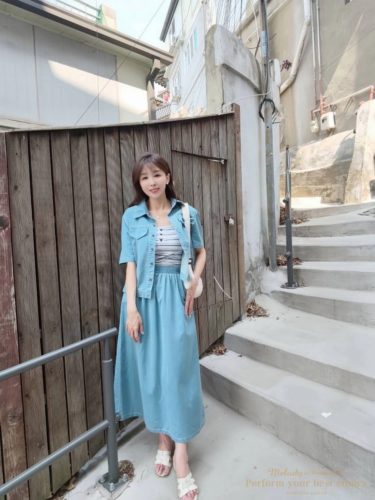 裙子-腰寬鬆緊帶34-53(26.8-41.7吋)/臀寬約57(44.9吋)/全長88/背面下襬開衩約30