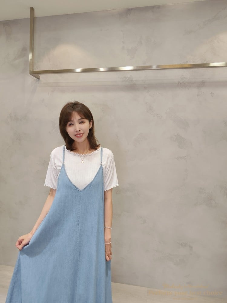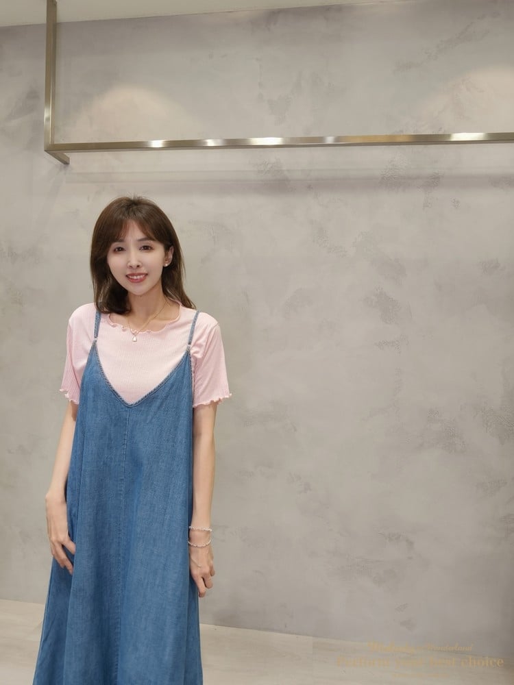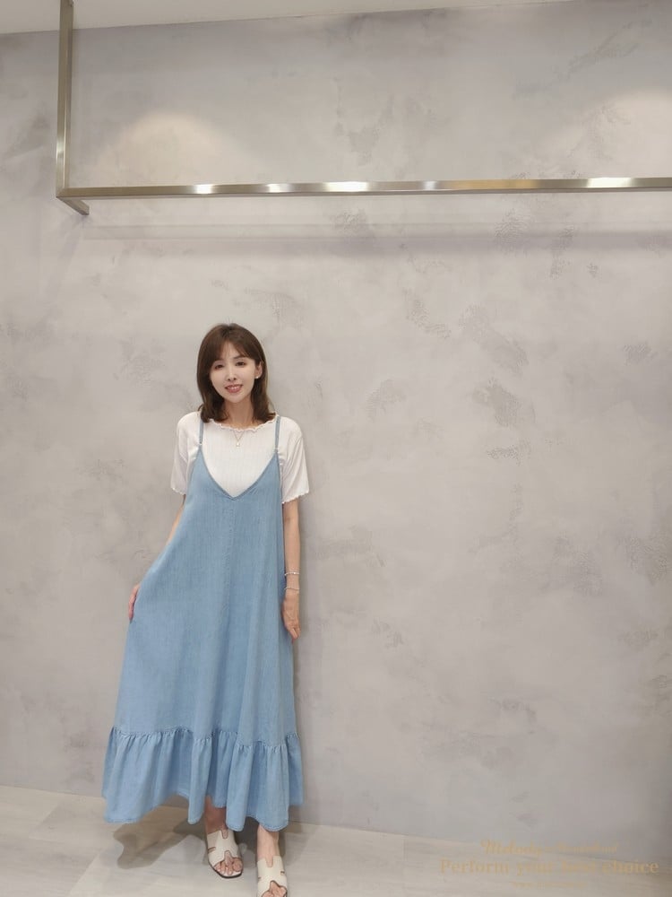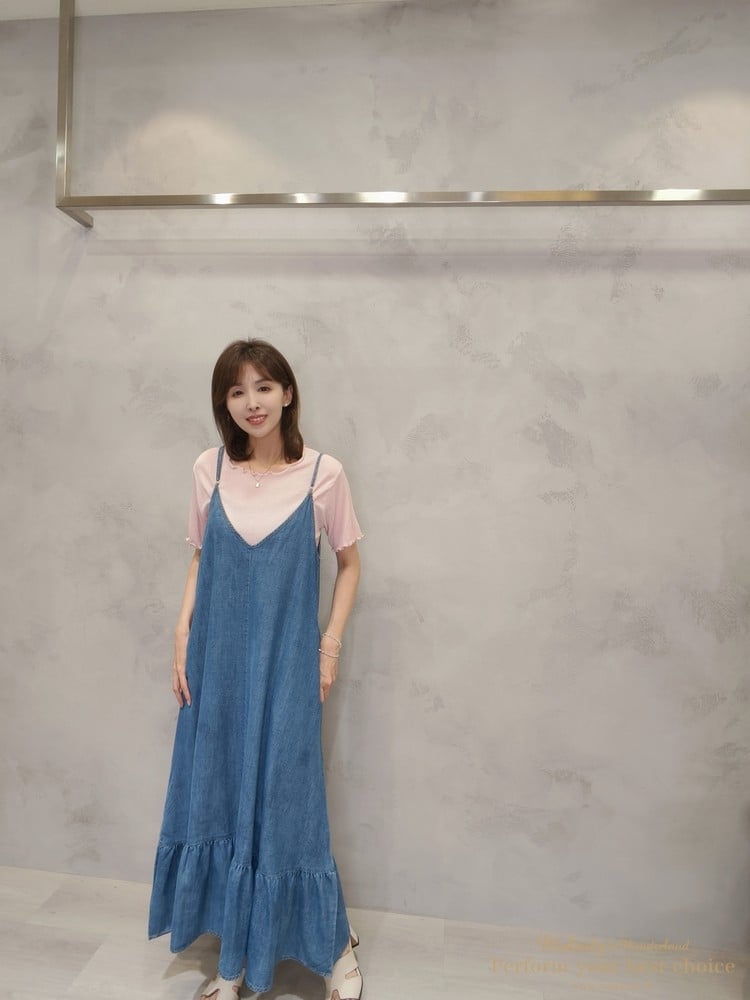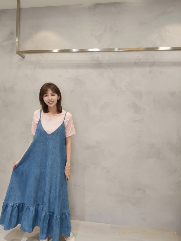 2605-111 吊帶V領裙襬造型長洋(2色)