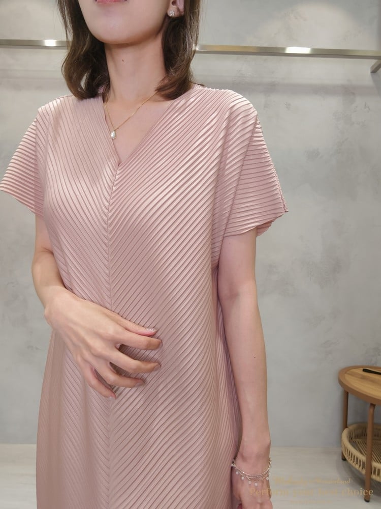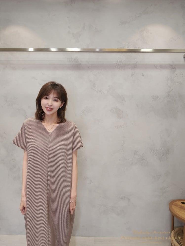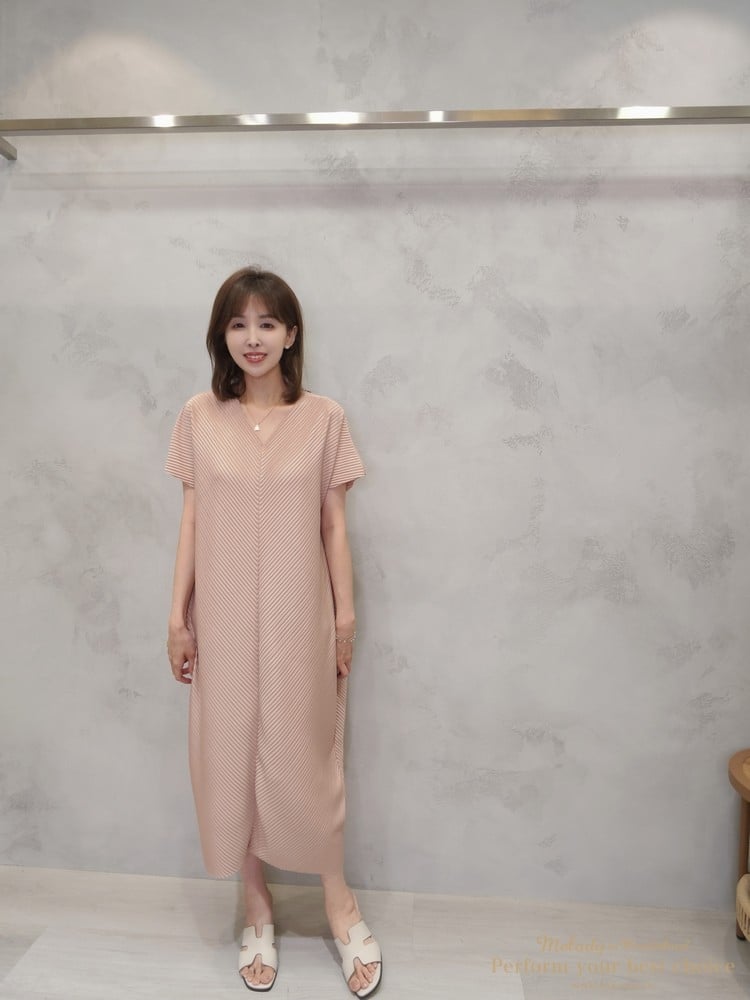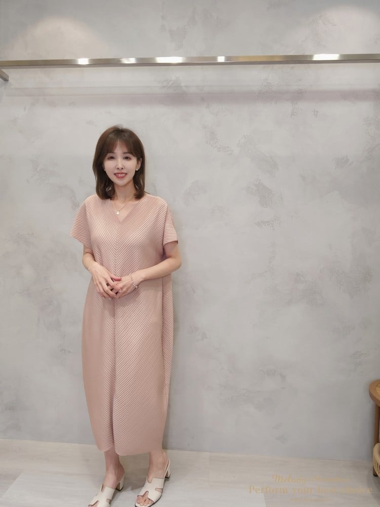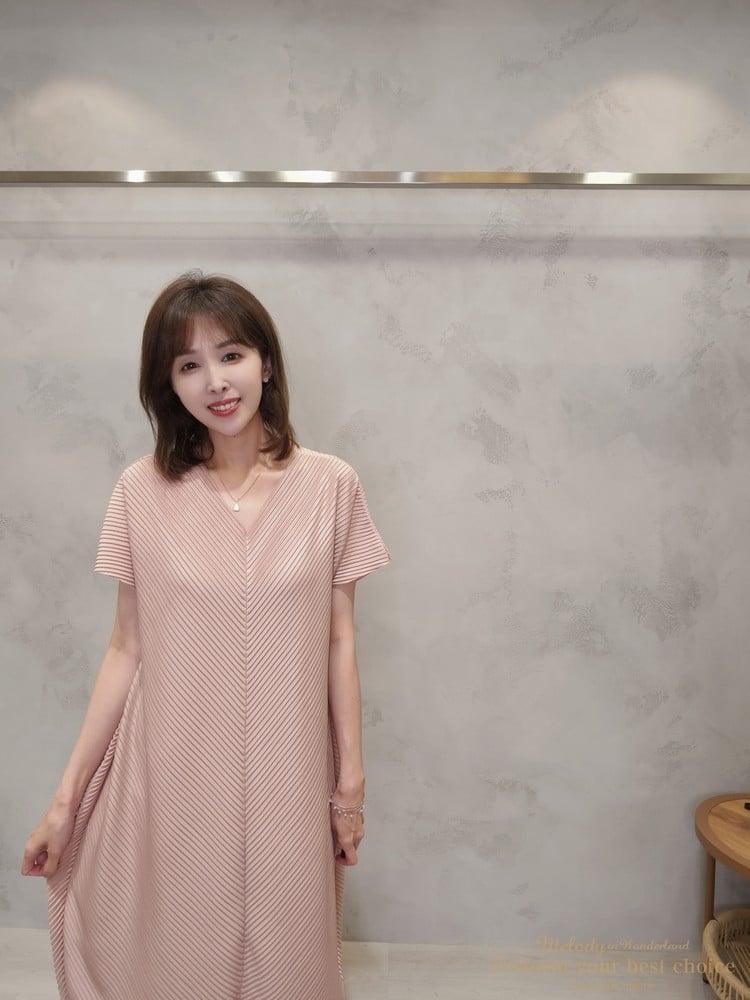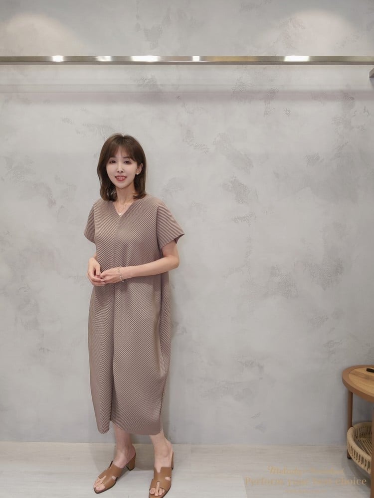 自訂款-V領坑條壓紋繭型洋裝(3色)