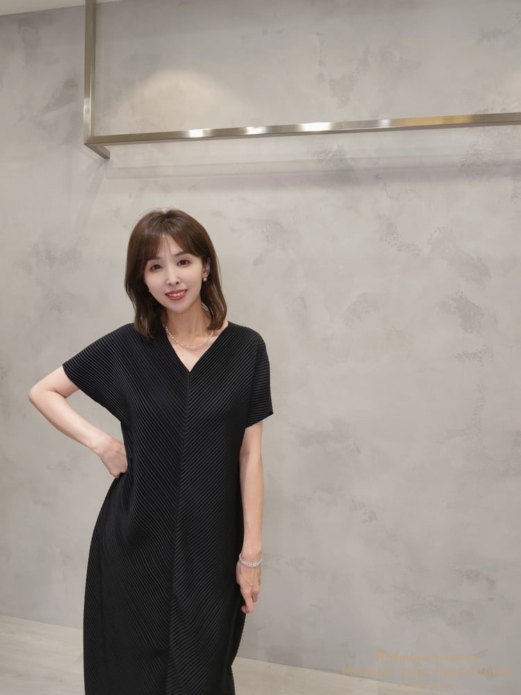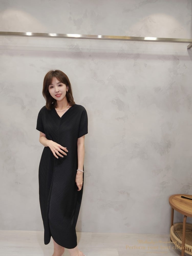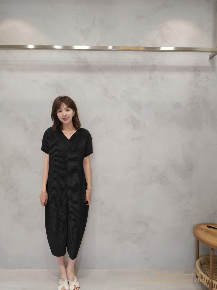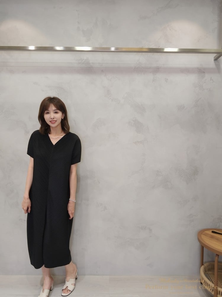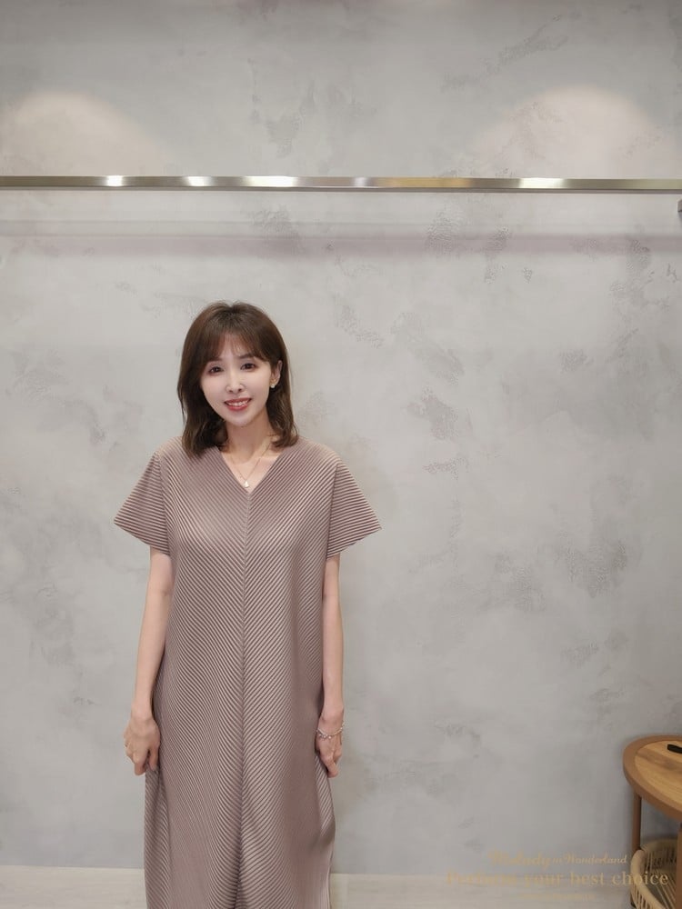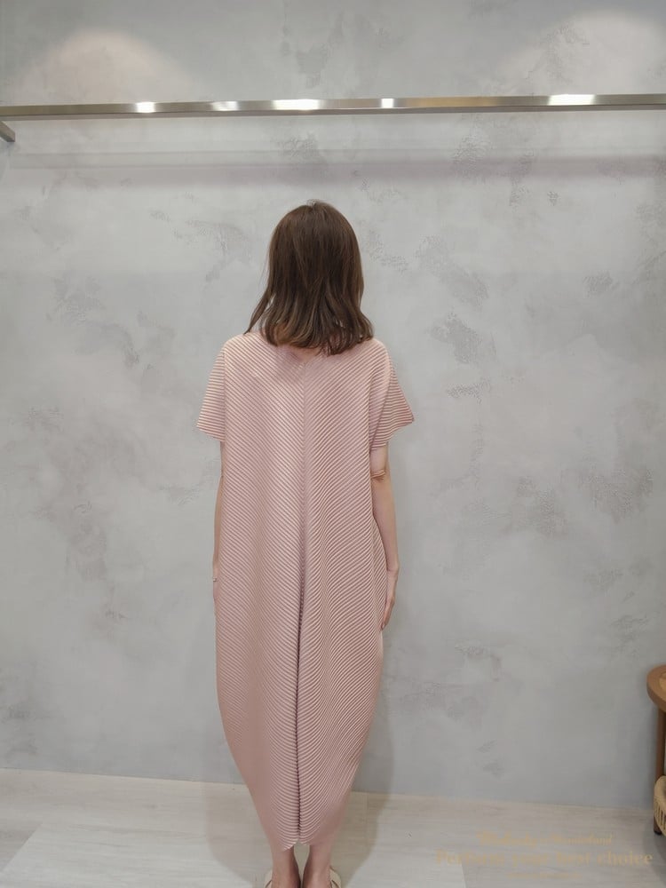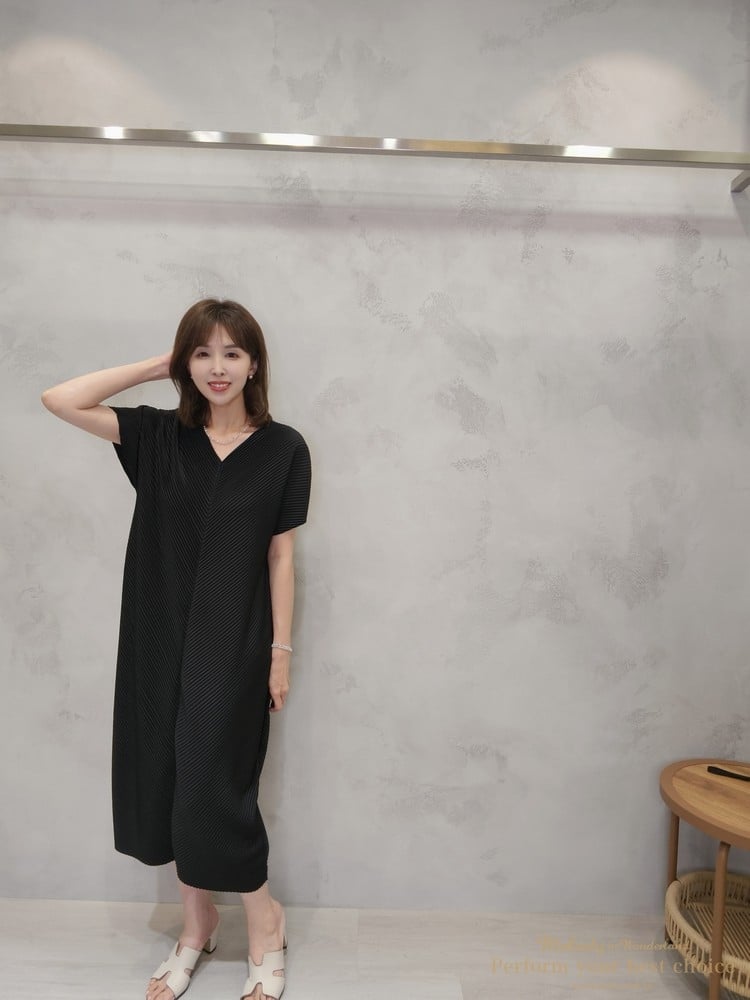 自訂款-V領坑條壓紋繭型洋裝(3色)