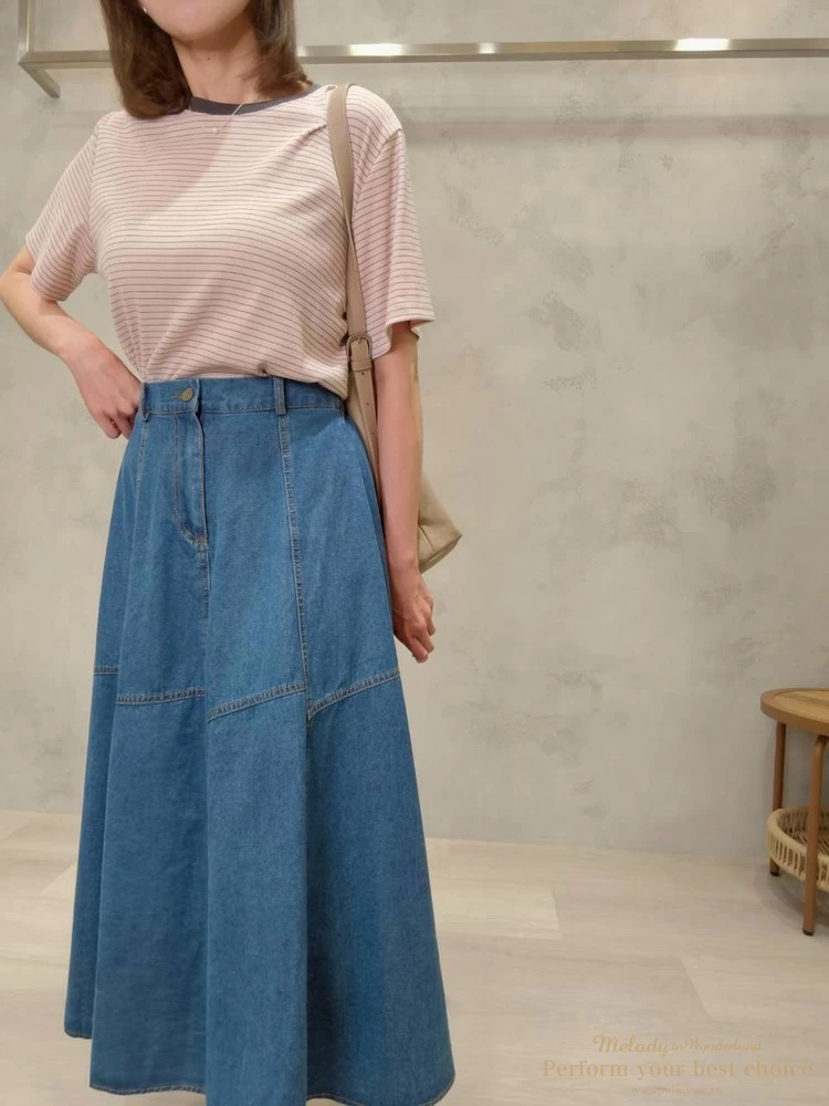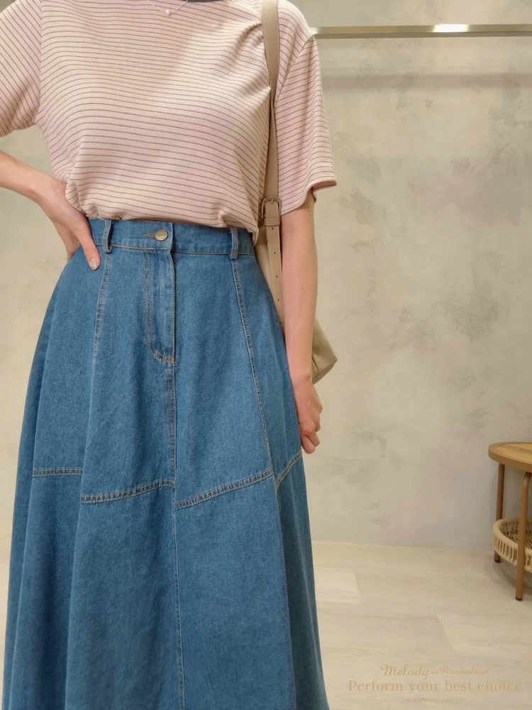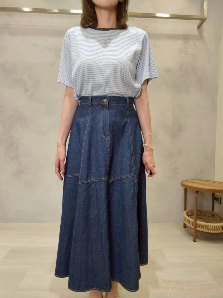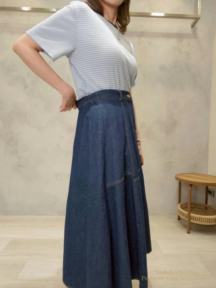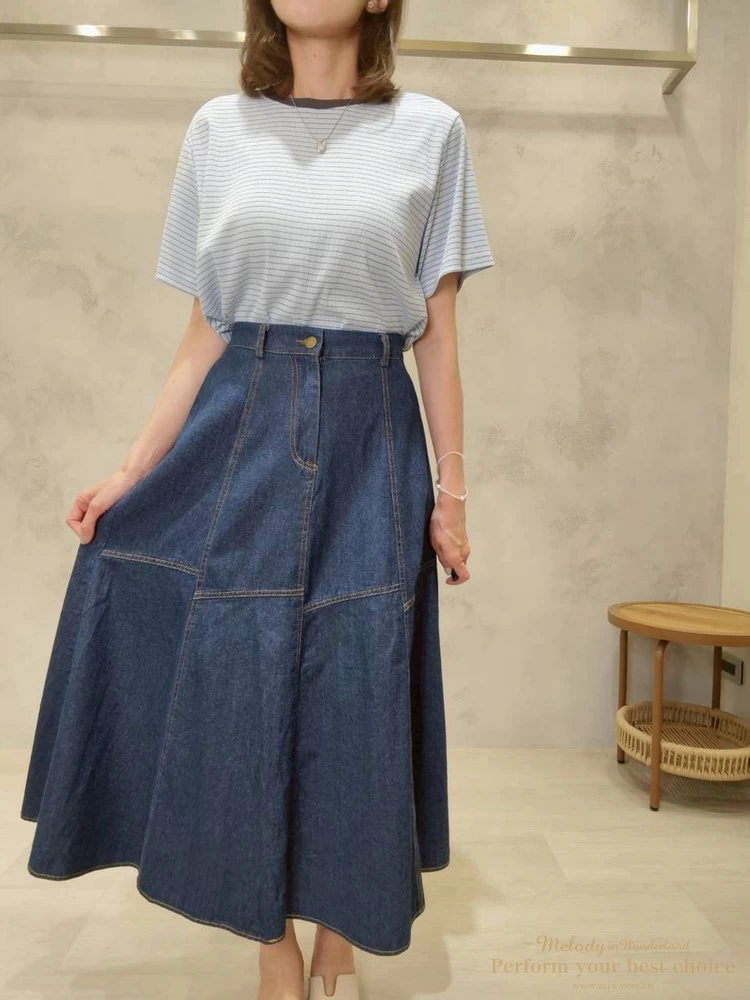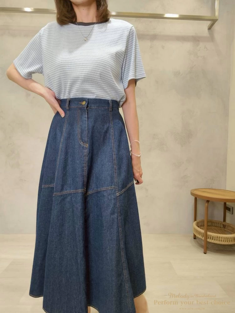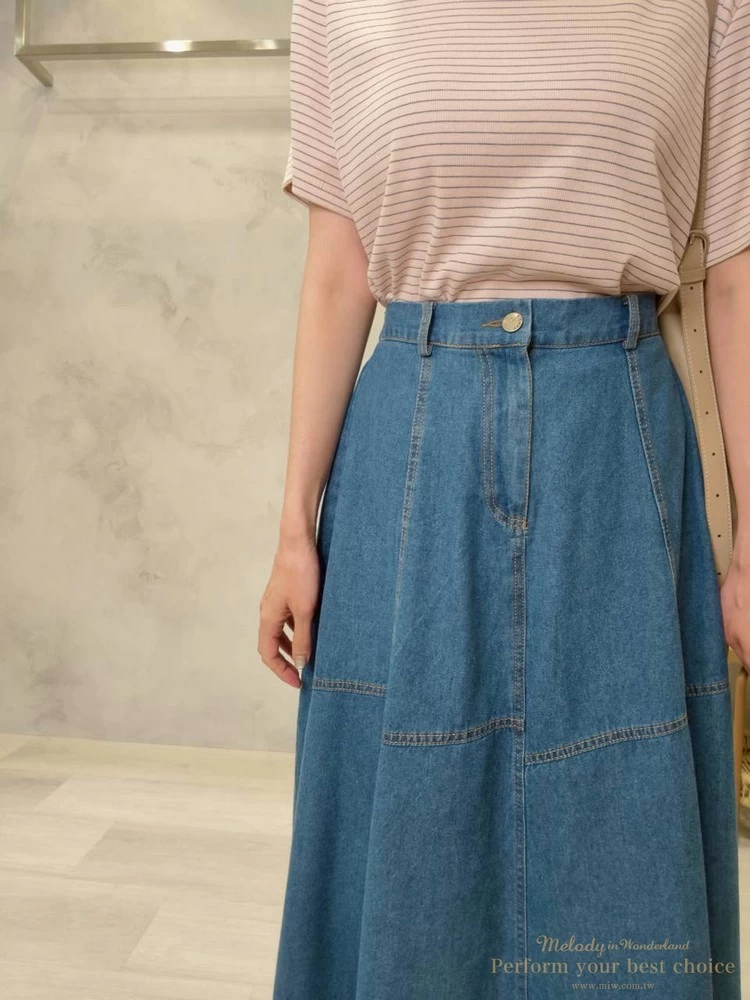 2605-125 修身車線拼接造型牛仔裙(2色)