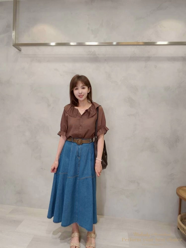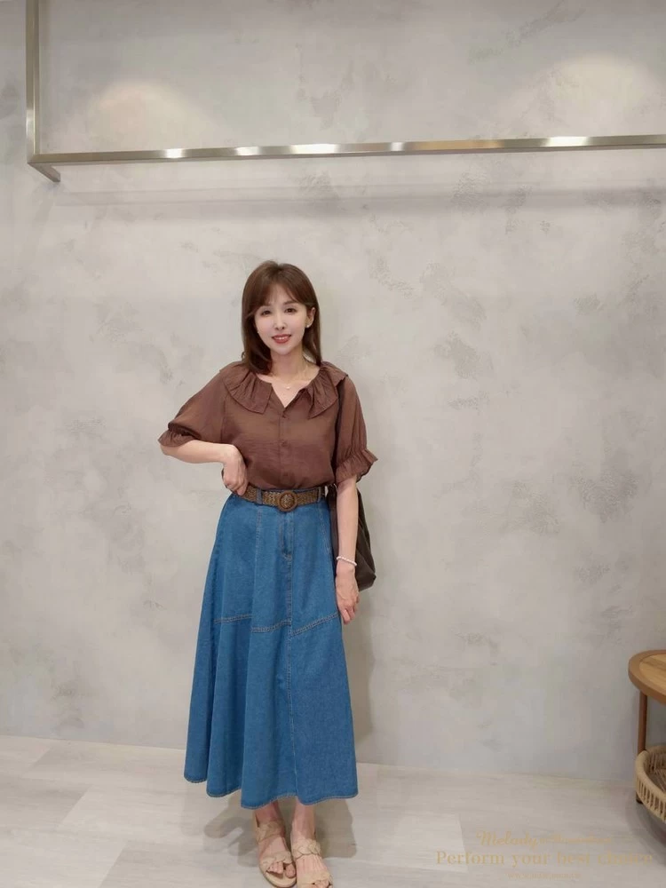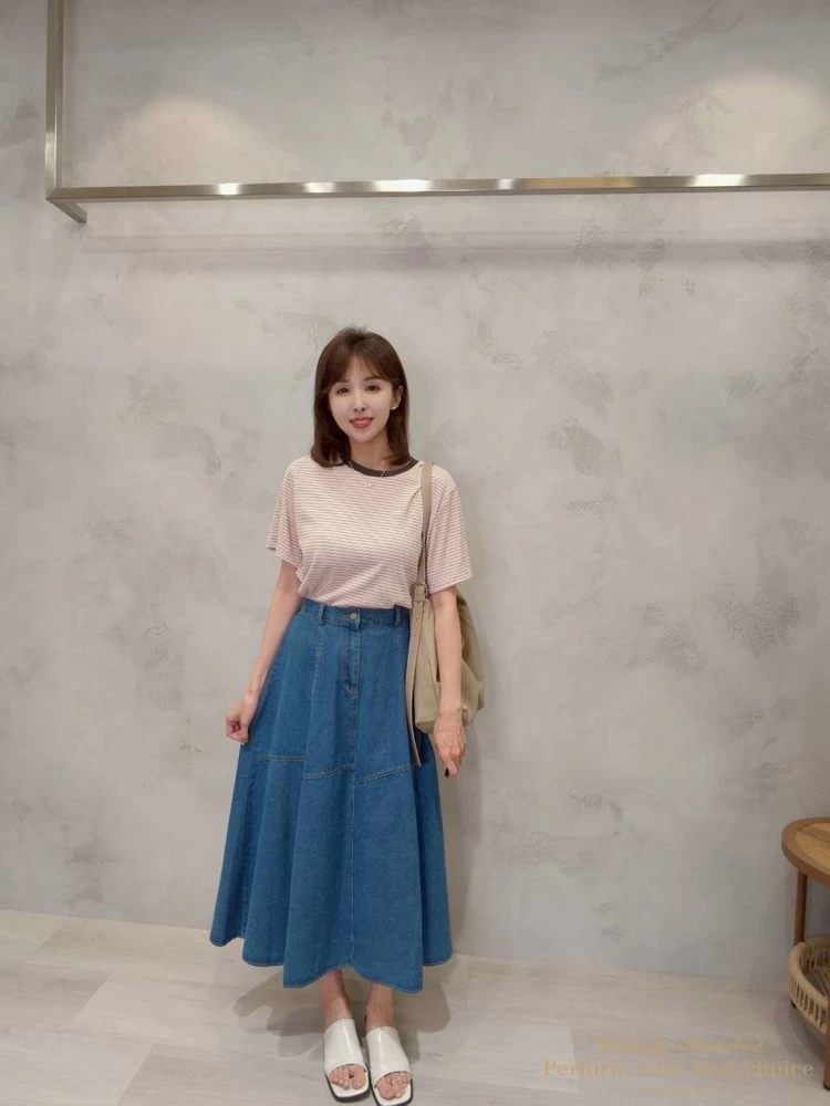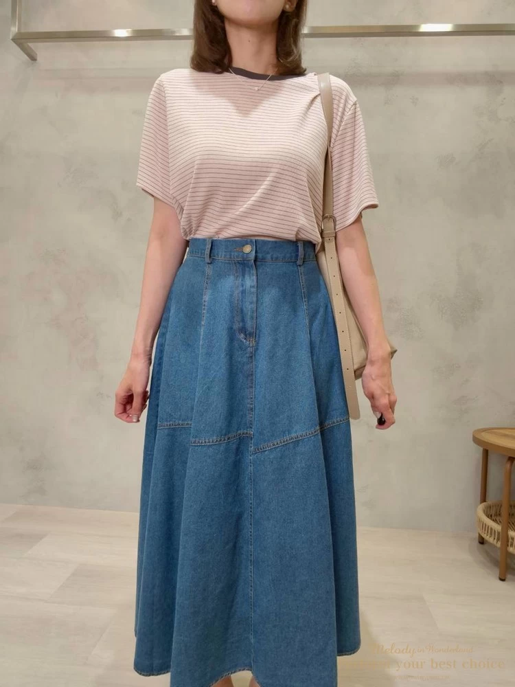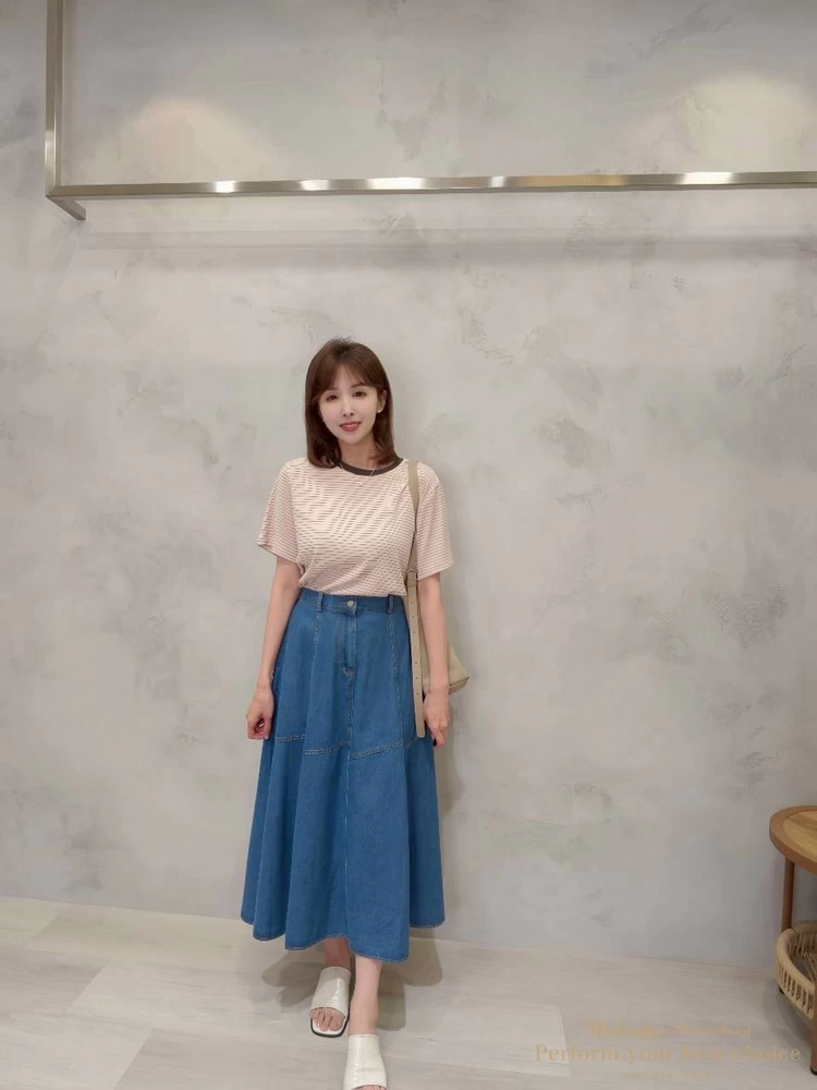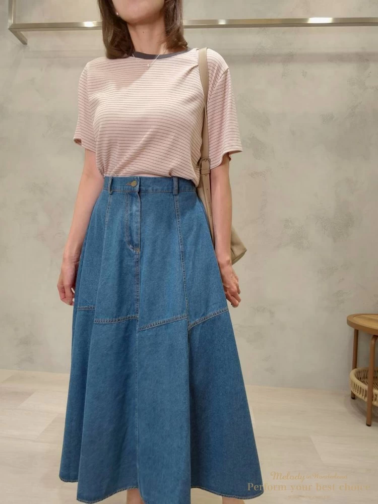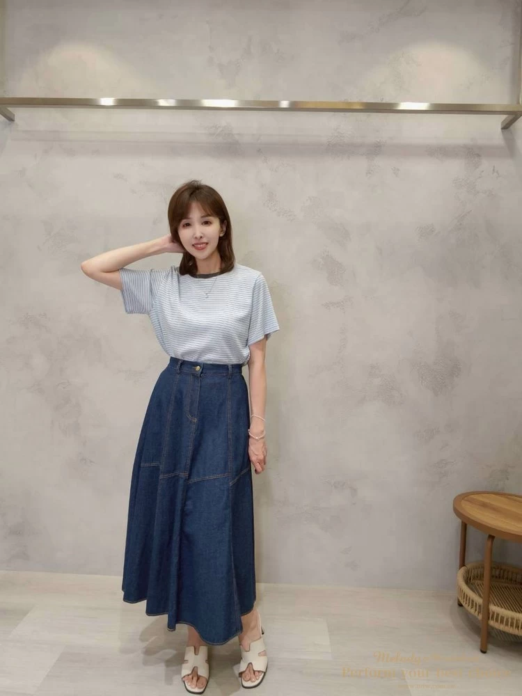 2605-125 修身車線拼接造型牛仔裙(2色)