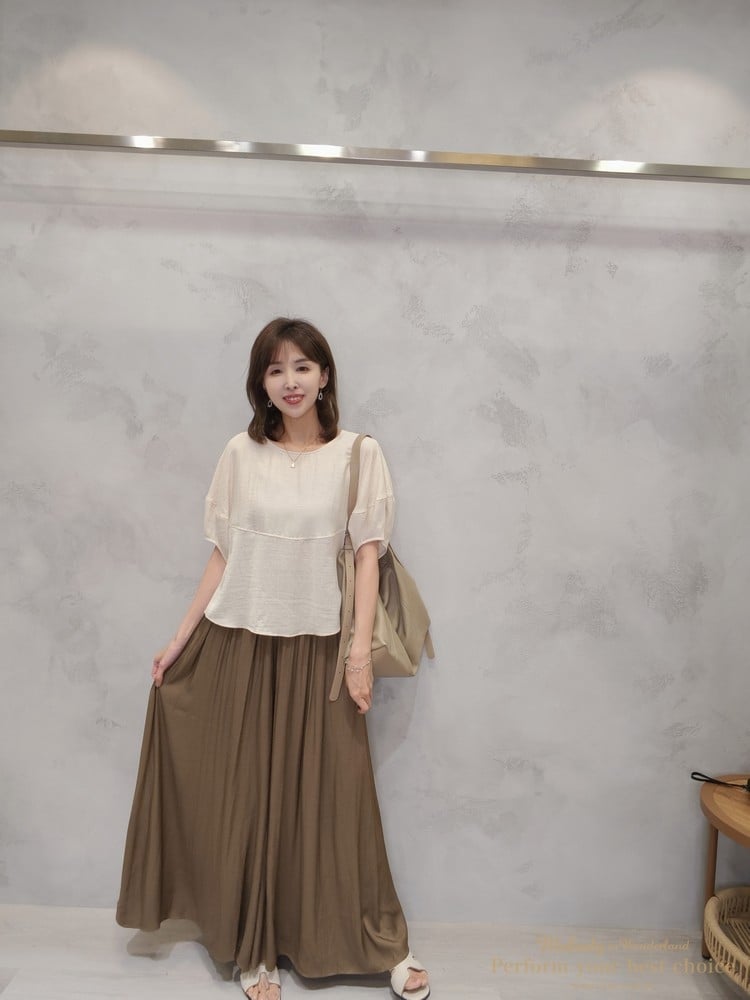 2605-142 氣質微光細抓摺冰絲寬褲(2色)