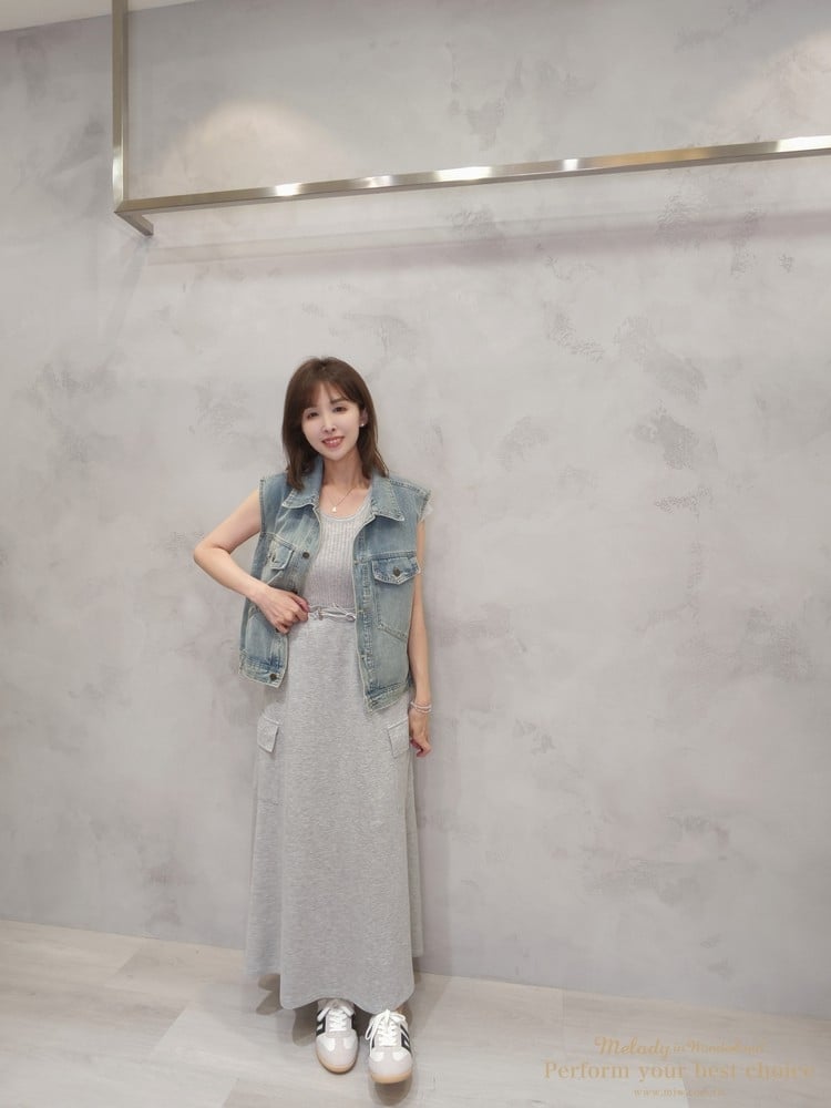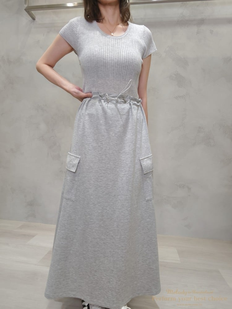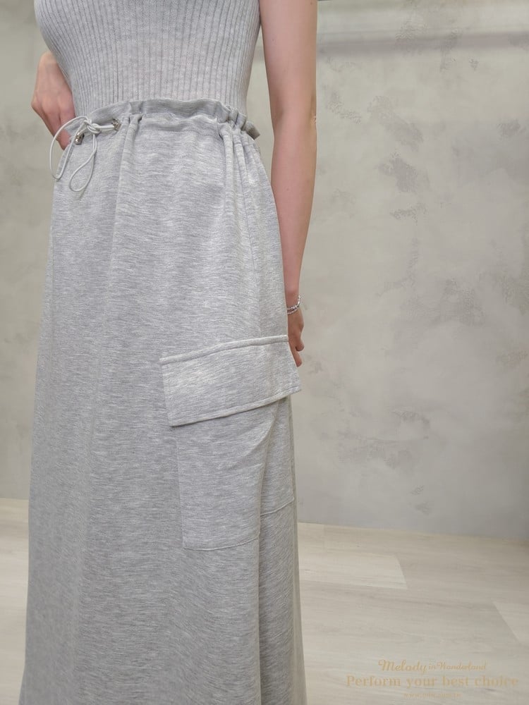 兩側翻蓋口袋造型金屬扣抽繩長裙(2色)