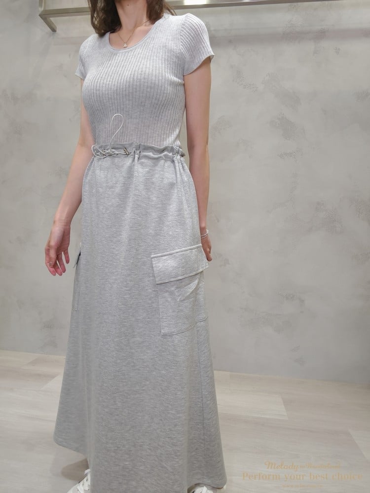2605-133 兩側翻蓋口袋造型金屬扣抽繩長裙(2色)