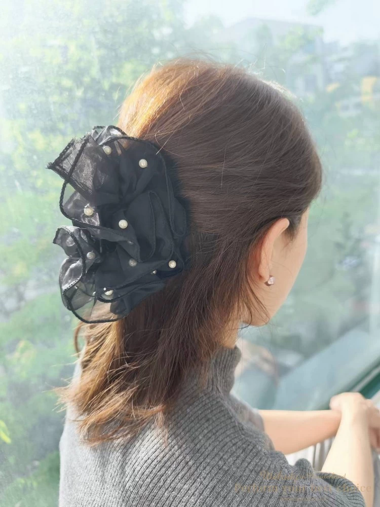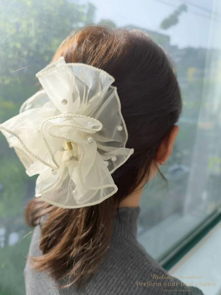 氣質珍珠柔紗造型髮夾(2色)