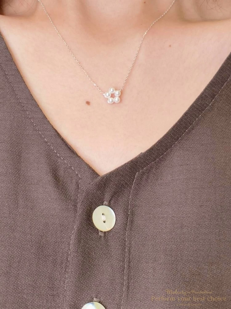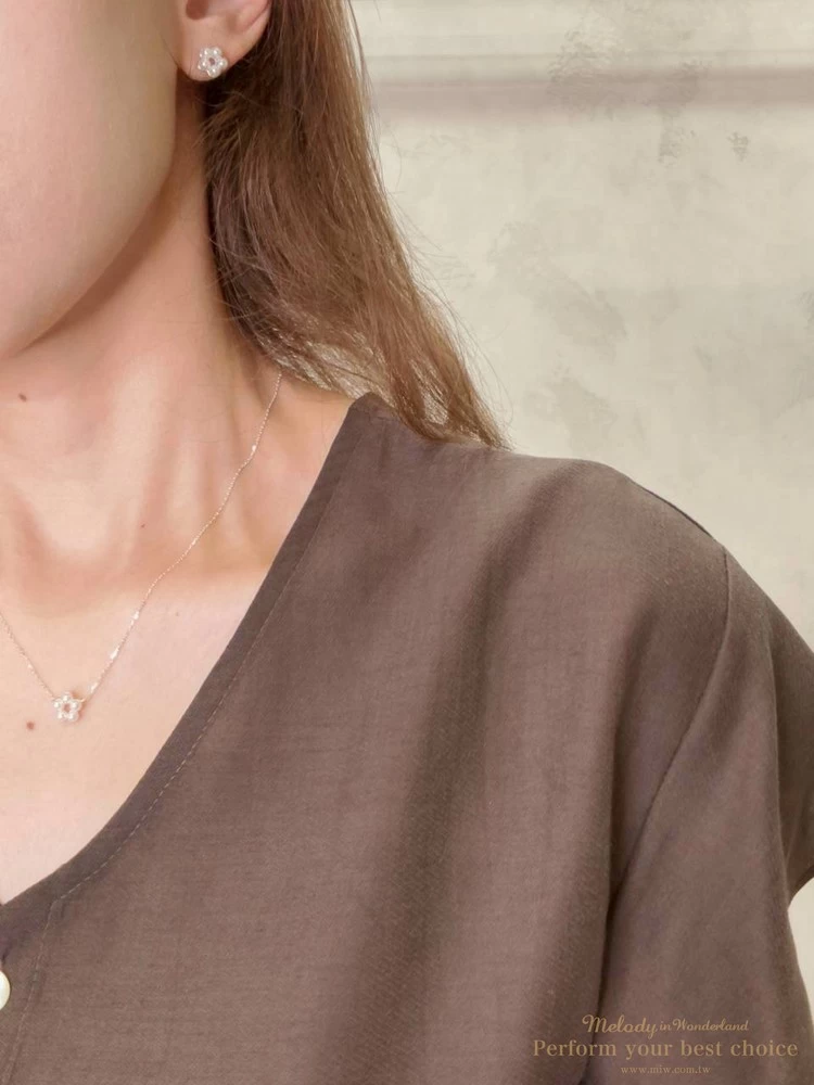 2605-184 氣質小花珍珠純銀項鍊/耳環