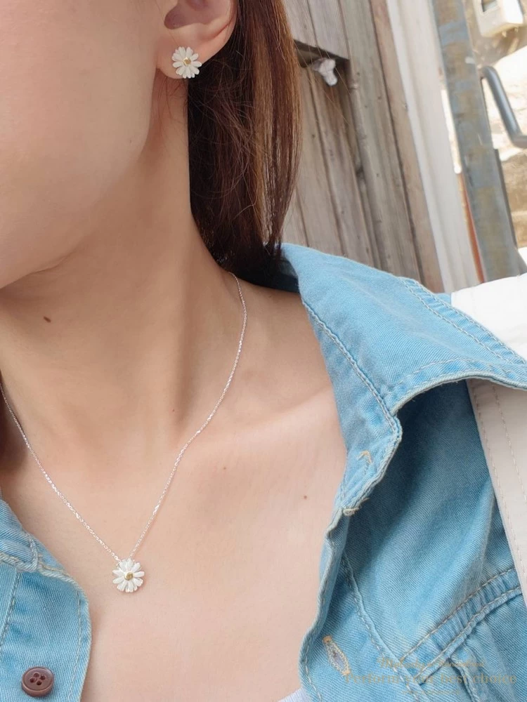 清新小雛菊整體純銀項鍊/耳環