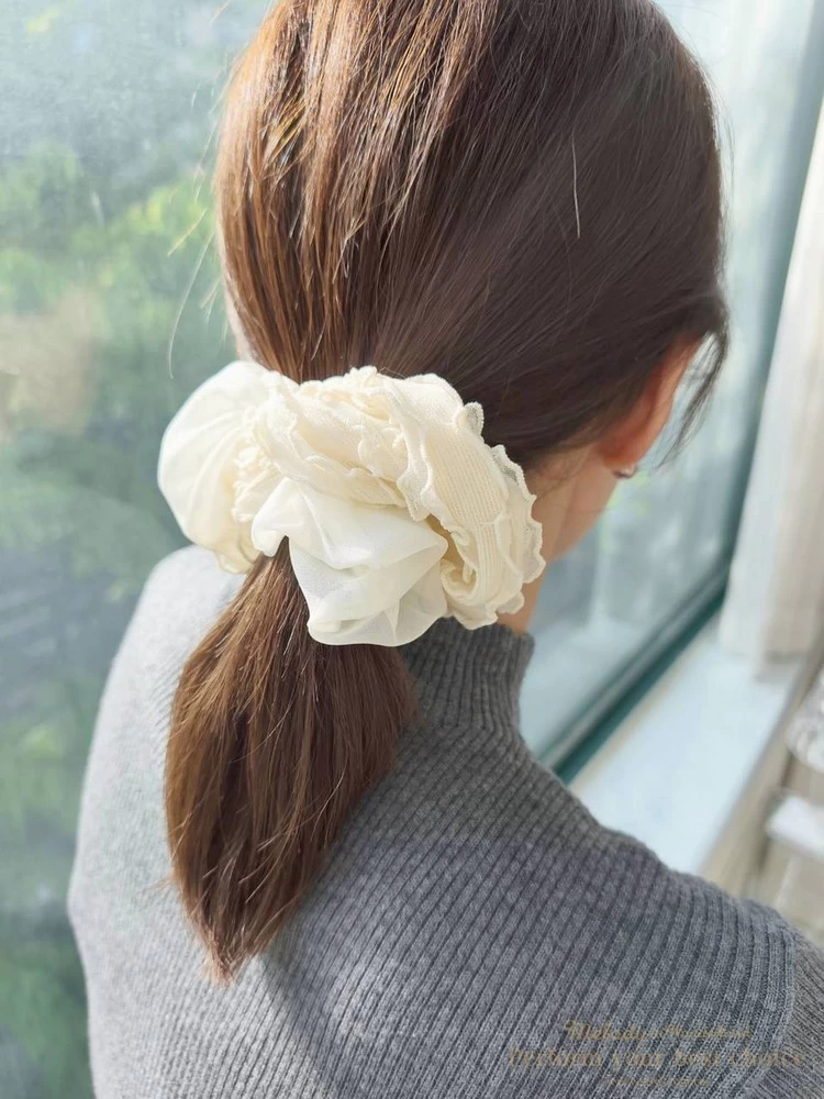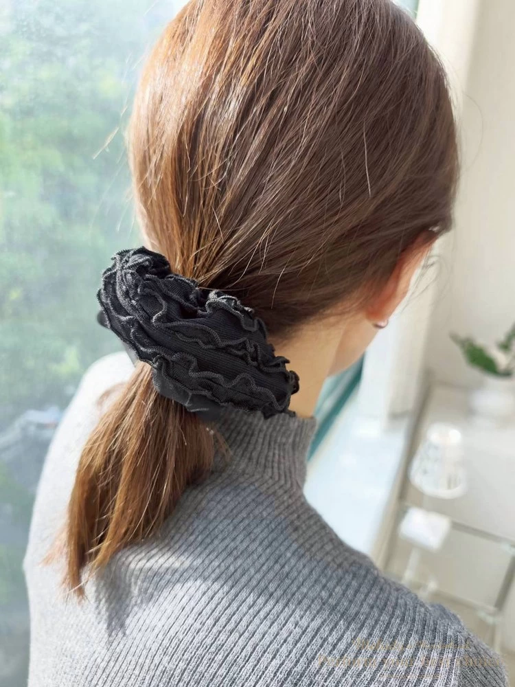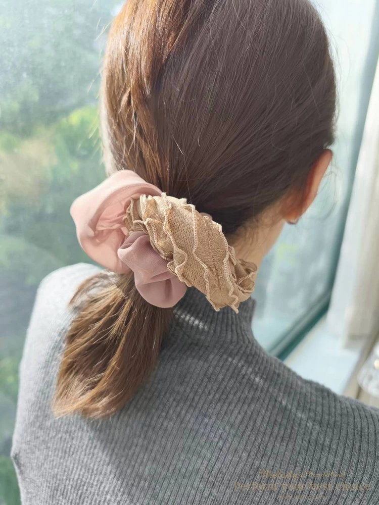 2605-170 溫柔抓皺拼接造型髮圈(3色)